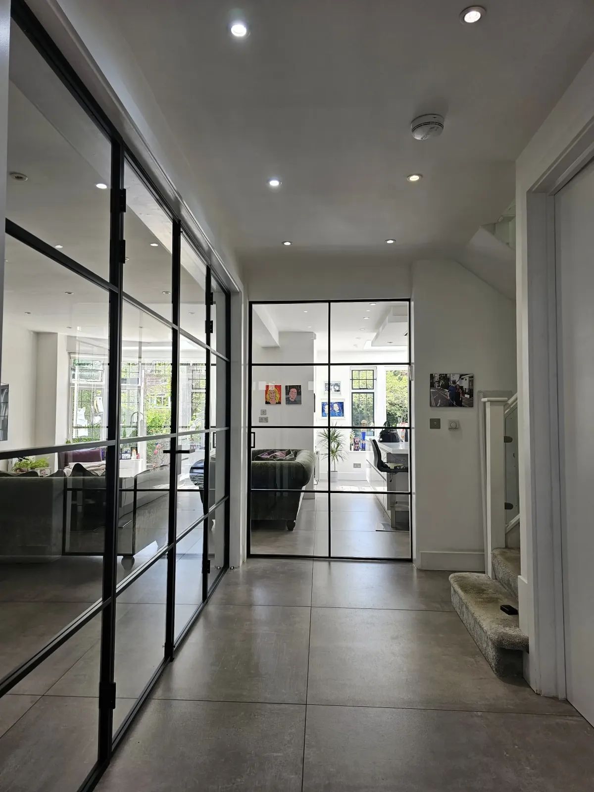 These double hinged doors, beautifully defined by a robust metal frame, are stunning! They swing wide open, creating a generous, welcoming pathway that instantly connects your spaces. You get all the lovely natural light flowing through, plus the solid, quiet feel of a traditional door when you need privacy. It’s elegance and function, all in one.